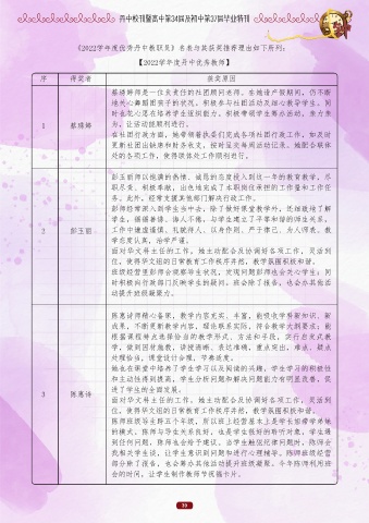 2 彭玉丽 工作中谦虚谨慎、礼貌待人、以身作则、严于律己、为人师表。教