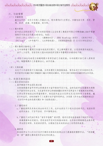 语调感情和应变能力,还有活动节目司仪的基本培训。这些培训课程都是由高年级