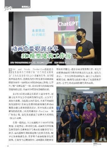 职涯 分 享 和 一 场 时 长 4 小 时 的 3 D 动 画 工 作 坊 , 让 学 过程,让学生对动画制作拥有具体画面。
