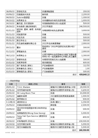 22/10/22 吉兰丹晋江会馆 献捐2022清贫生助学金-2份 5,000.00