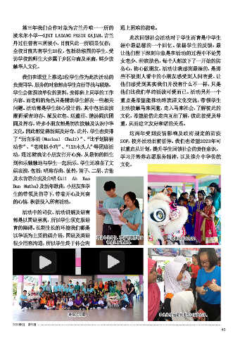 问题。活动都是学生细心设计的,其中包括表演 主动接触马来同胞,走入马来社会,了解彼此的